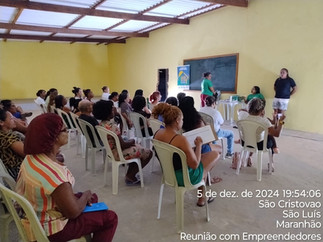 No dia 05/12/2024 aconteceu na sede da associação dos moradores uma Palestra Temática para empreendedores locais participantes da Feira de Negócios, com a temática da “organização em rede de comercialização”, ao qual objetivava o repasse de informações sobre como os empreendedores podem ser organizar em redes tanto para efetivar os eventos de comercialização, como para compras e vendas conjuntas. Participaram da palestra cerca de 70% dos empreendedores cadastrados para feira de negócios, estando os mesmos muito animados para levar adiante a organização de uma rede de empreendedores do Residencial Morada do Sol.